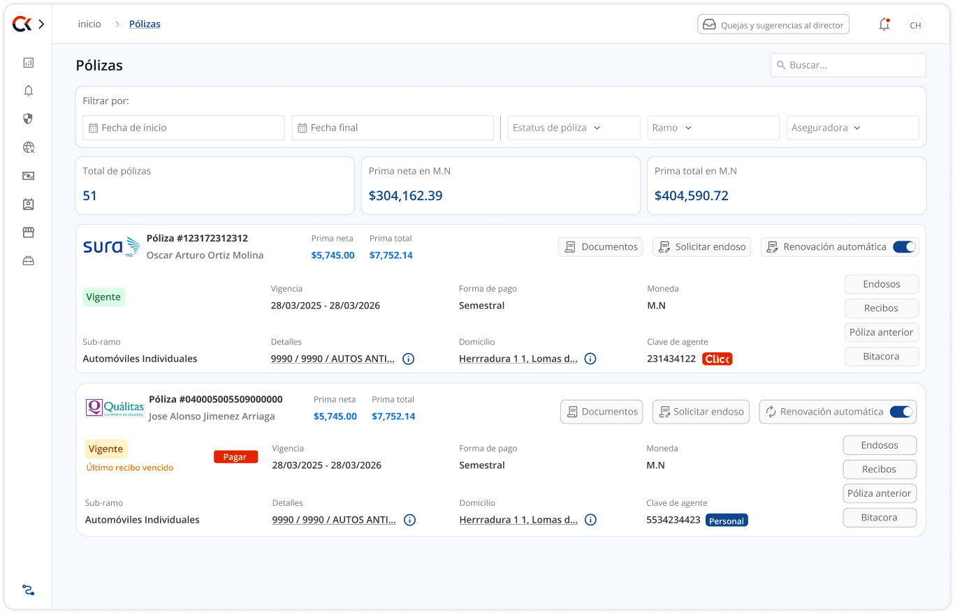 Convenio directo con más de 50 aseguradoras líderes en el mercado. Ofrece a tus clientes las mejores opciones sin limitaciones.
